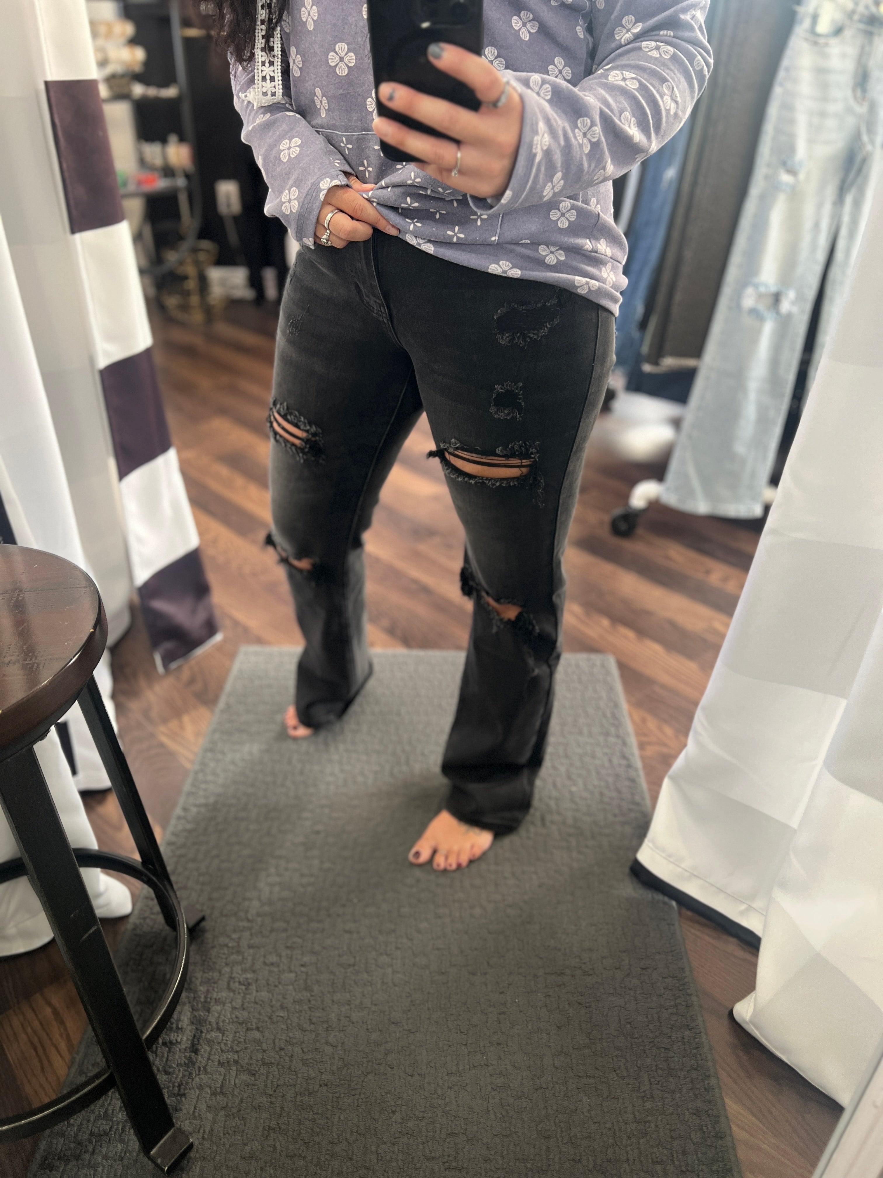 Meegan's Fit: Meegan is 5' 2ish" She typically wears a M in tops, a M in graphic tees, size 5, 6 or 27" in jeans, size M in shorts and size M in leggings. She wears a 5 in these jeans.