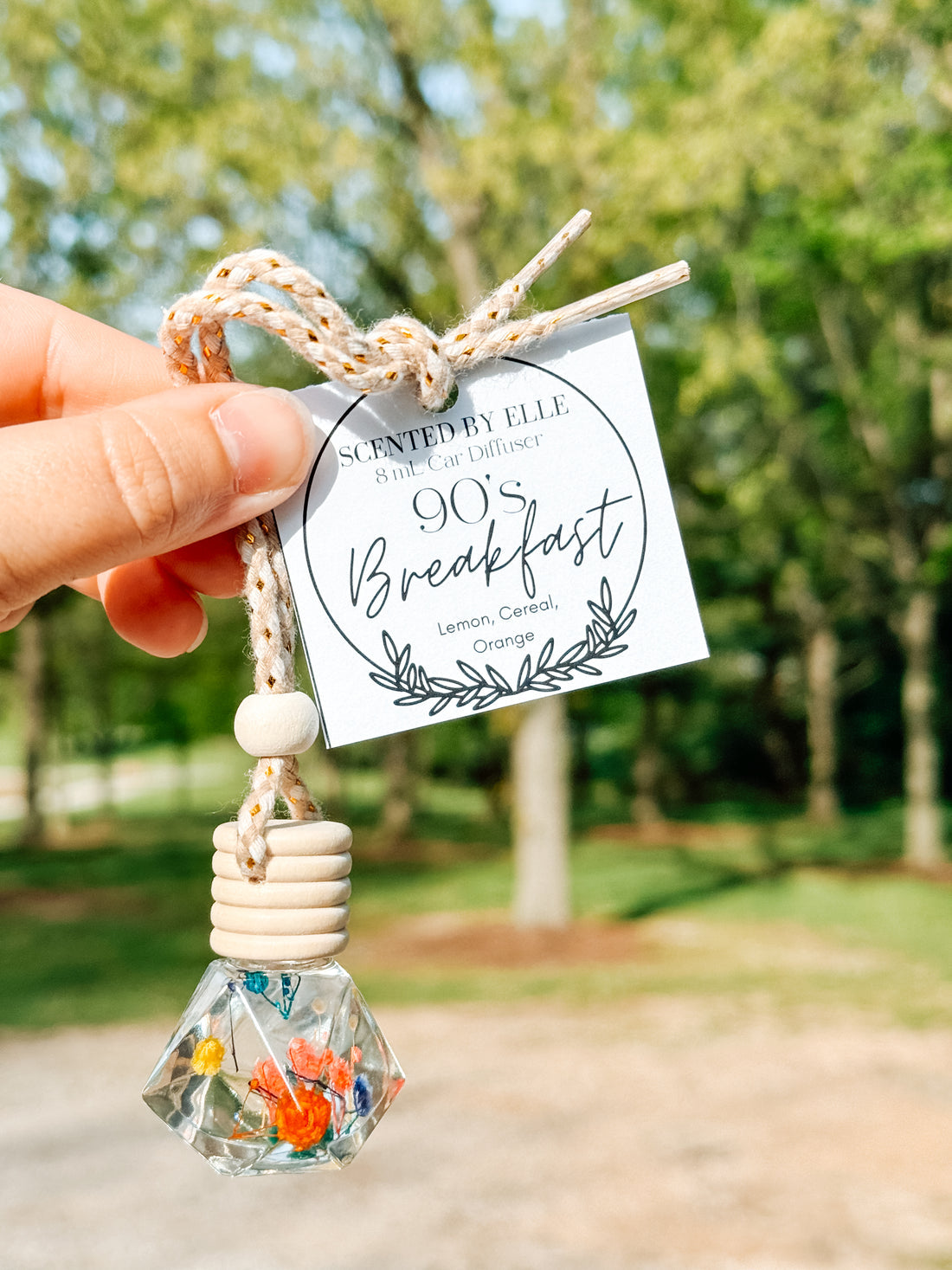 90s Breakfast Travel Diffuser features puff flowers in a classy bottle - she's got all the details down to a T! Bottle shape may vary.