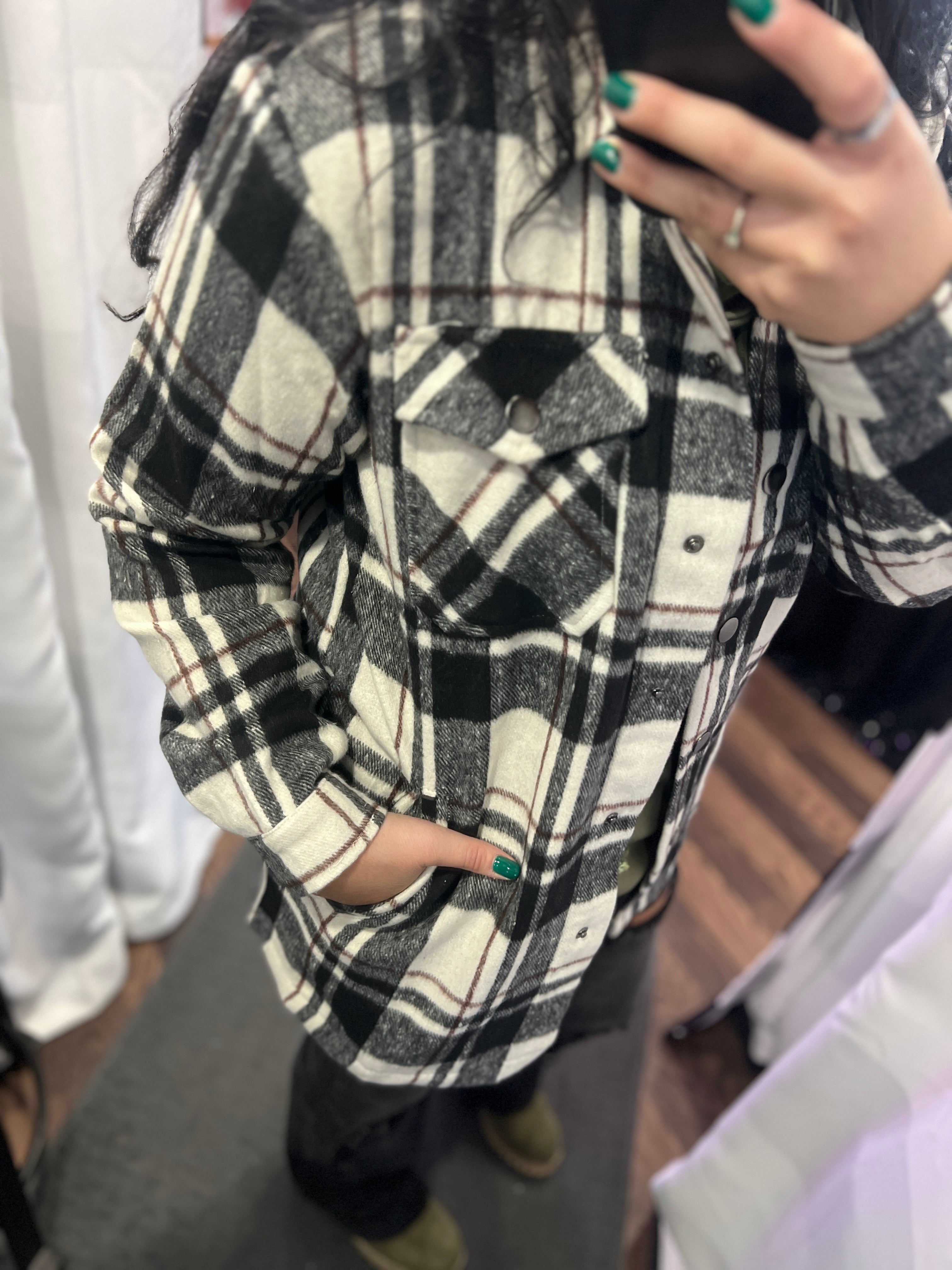 Meegan's Fit: Meegan is 5' 2ish" She typically wears a M in tops, a M in graphic tees, size 5 in jeans, size M in shorts and size M in leggings. She is pictured in a M. She wears M & L - just depending on how she wants to layer it. L to pair with thick hoodies, M for dressier or everyday wear.