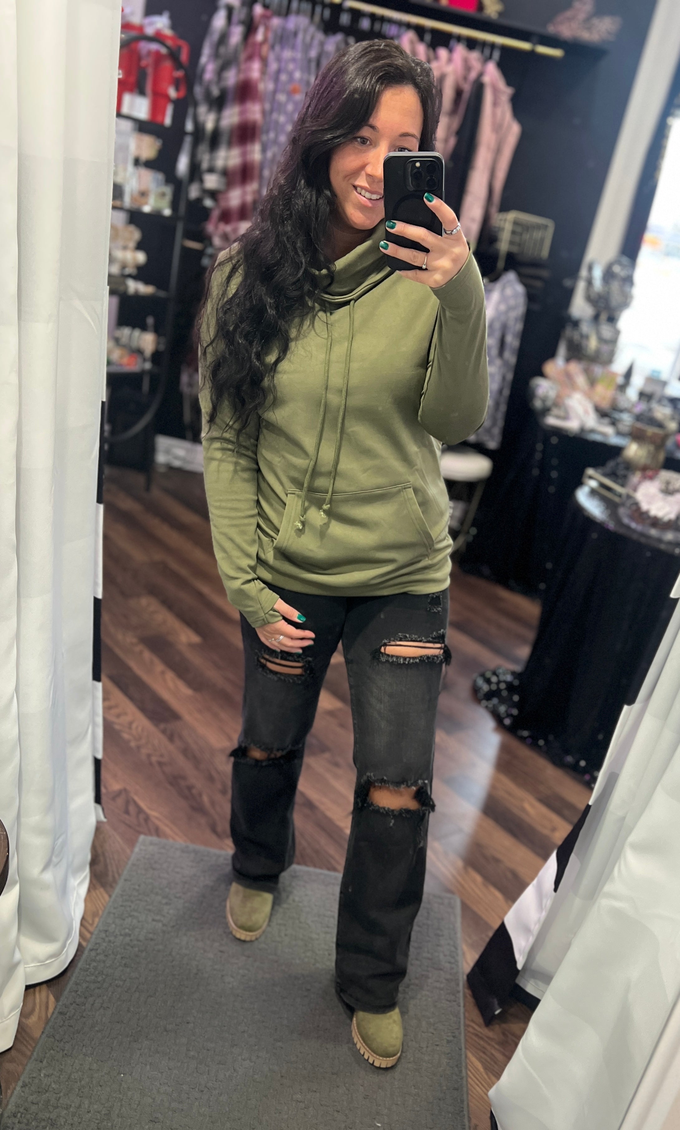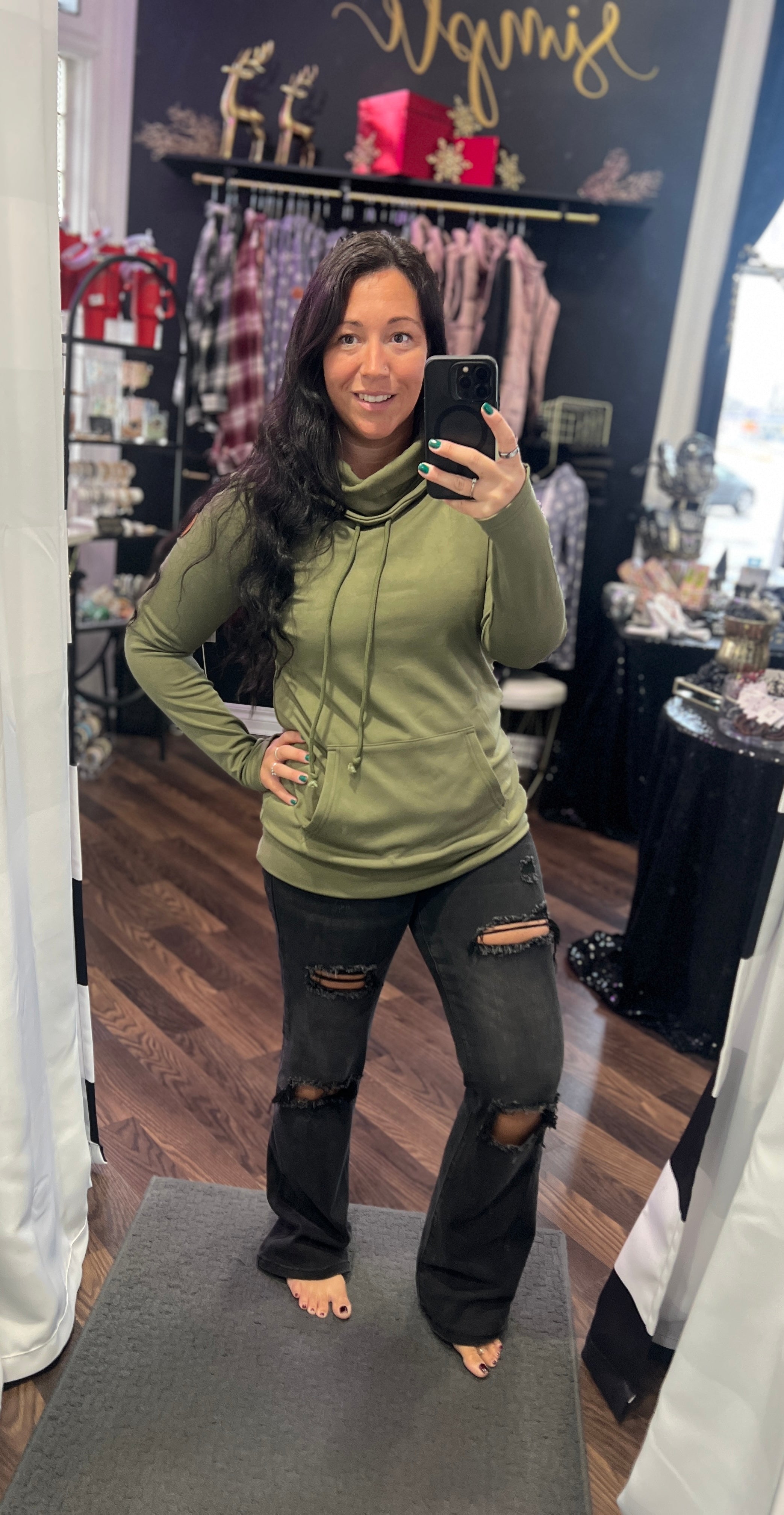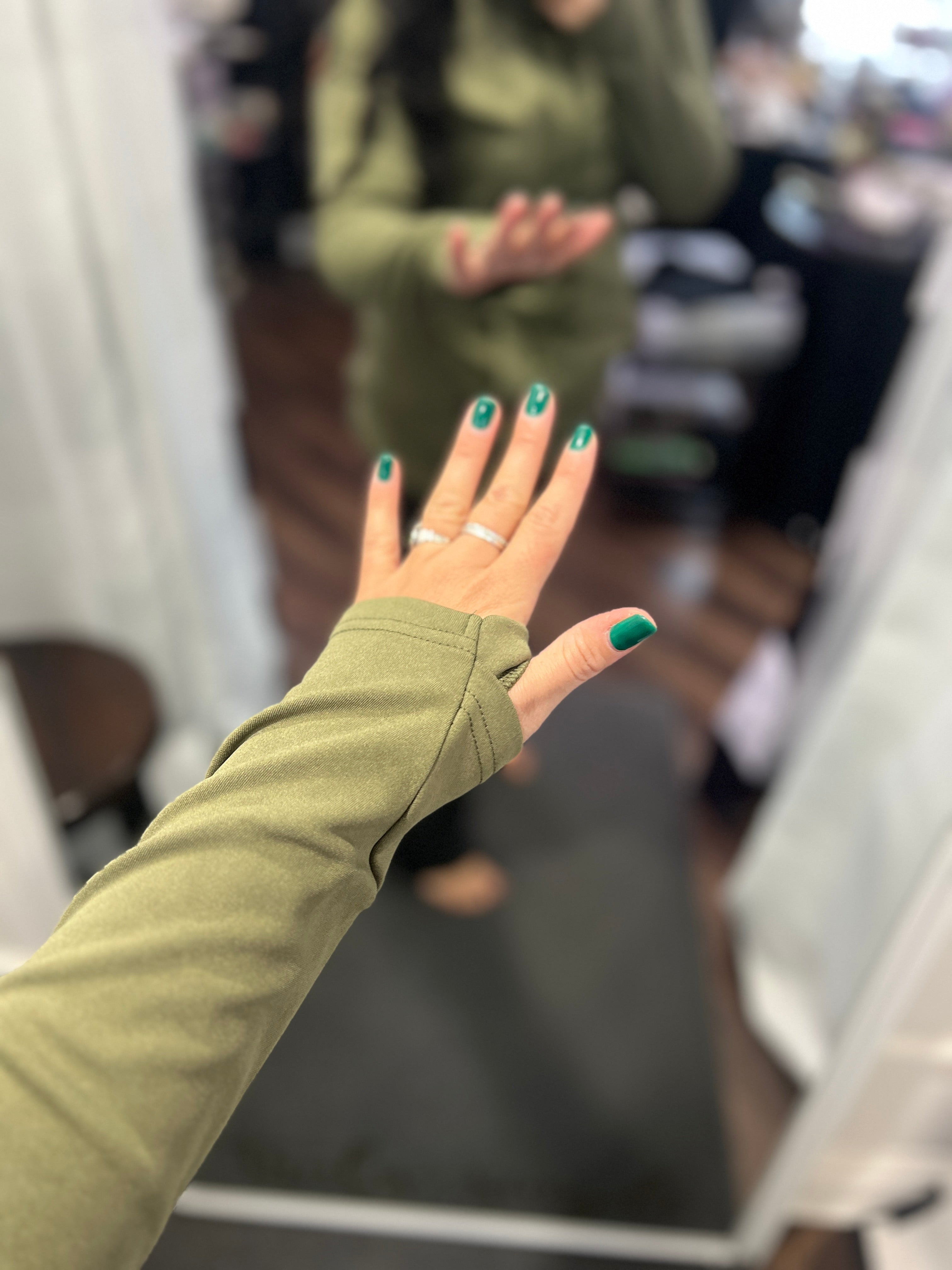 Get ready to cozy up in the Cloud Funnel Neck! With its incredibly soft fabric and perfect fit, this top will keep you feeling warm and comfy all day long. Perfect for any casual occasion, it's a must-have addition to your wardrobe. Also features the thumbholes that are perfection! We love that the funnel neck does not feel suffocating, nice and roomy in the neck area.