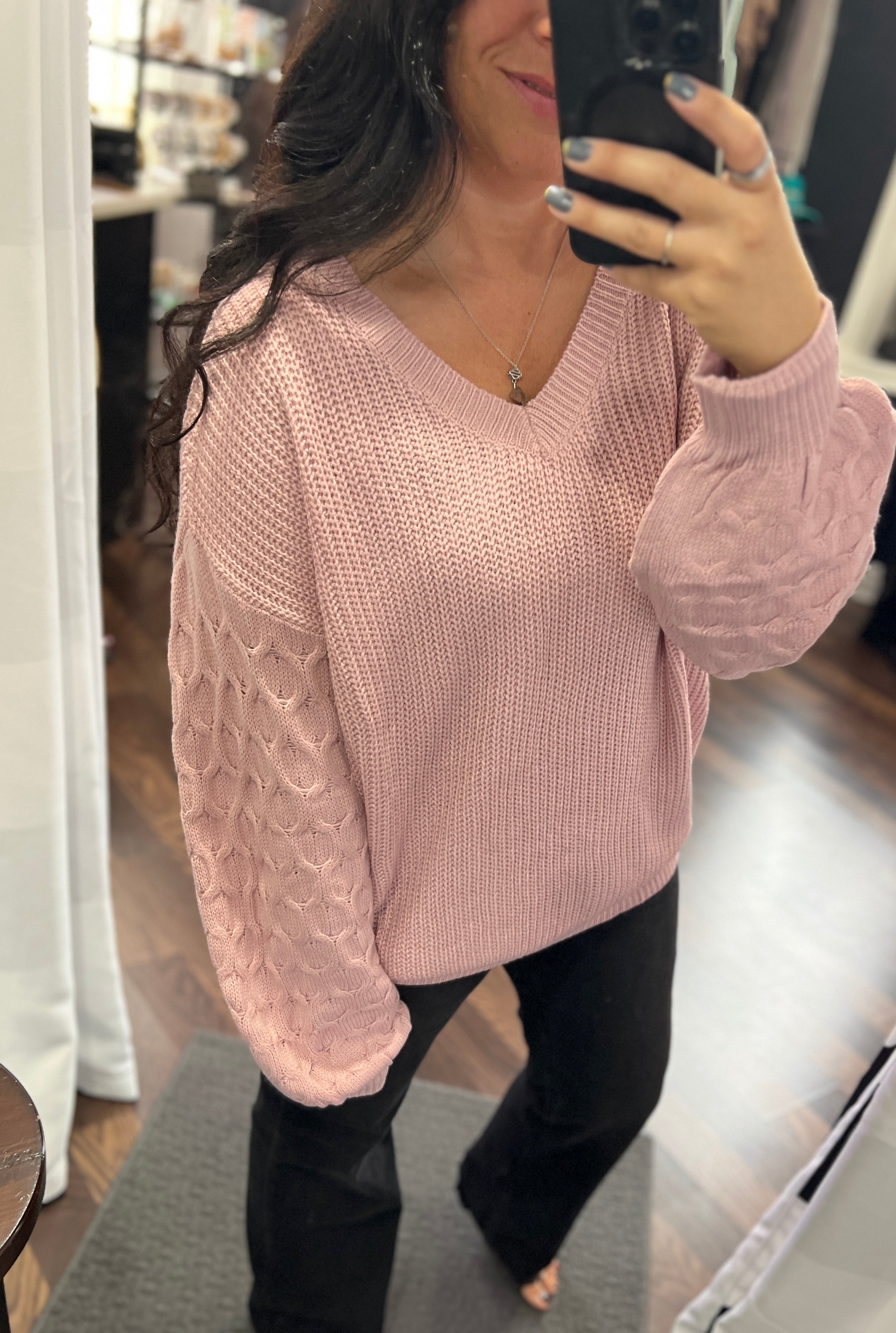 Get ready for chilly weather with the Navy Textured Sweater. Made with a mix of soft and cozy textured patterns, this V-neck sweater is perfect to stay warm and stylish all fall & winter! Meegan loves the v-neck and relaxed fit.