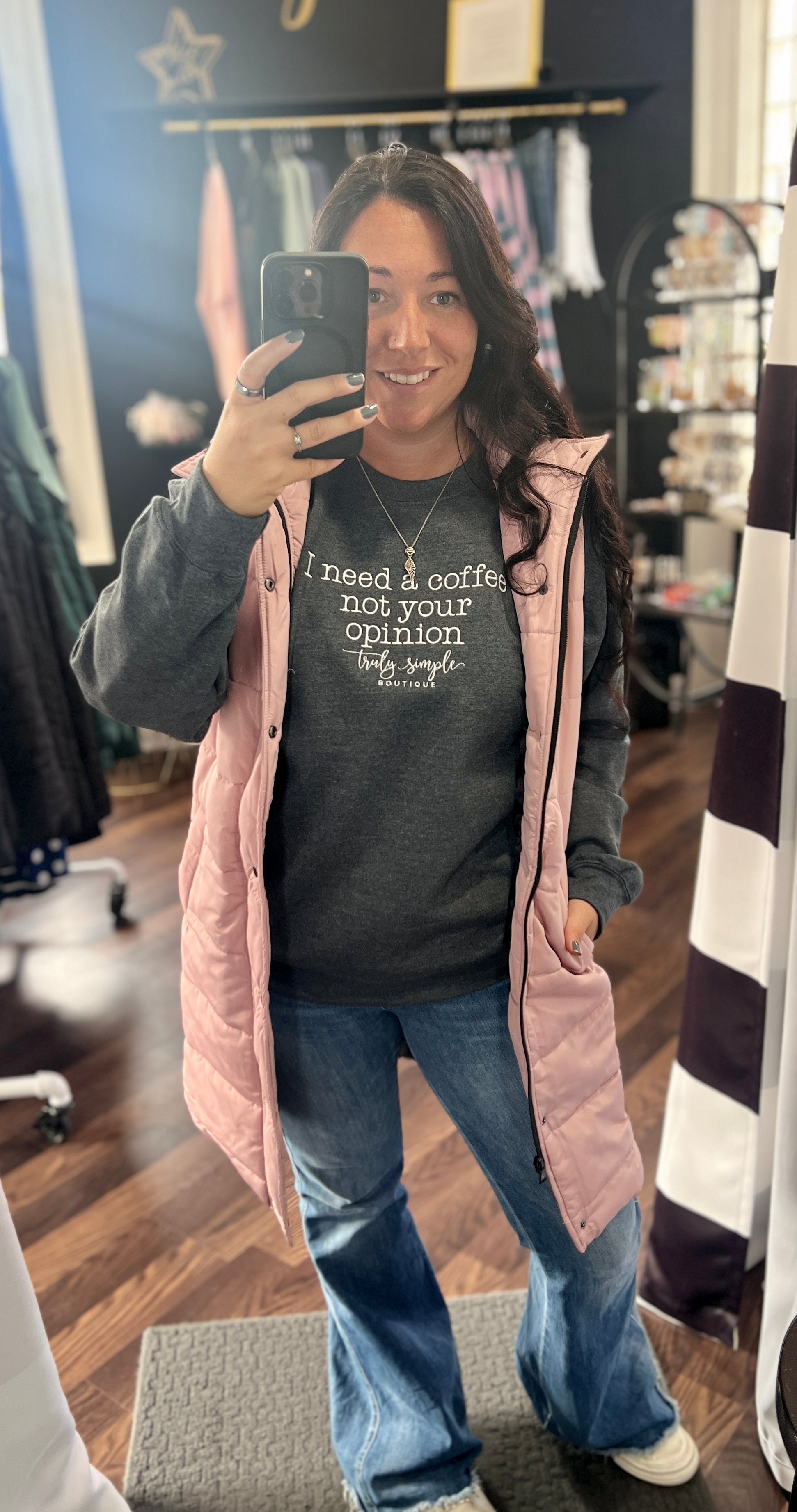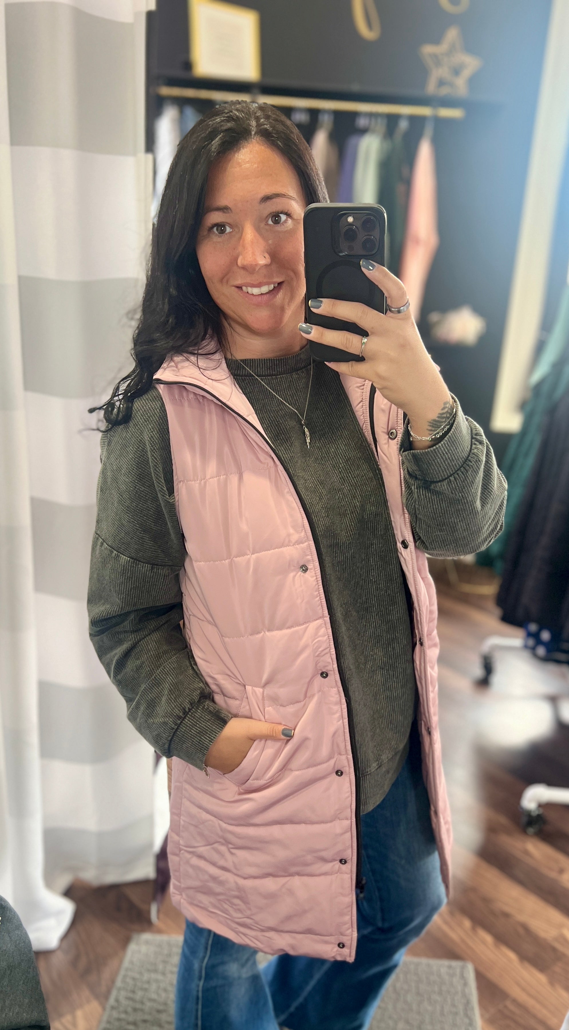 These incredible long vests are EVERYTHING; available in THREE colors - black, blush & hunter! They got all the details perfect including: long length to cover you butt, WARM, perfect relaxed fit for layering, POCKETS, zipper & snap closure. I cannot believe how light these vests are compared to their warmth and if you are traveling they pack well, NOT bulky. Get ready to fall in love and complete your fall and winter looks!