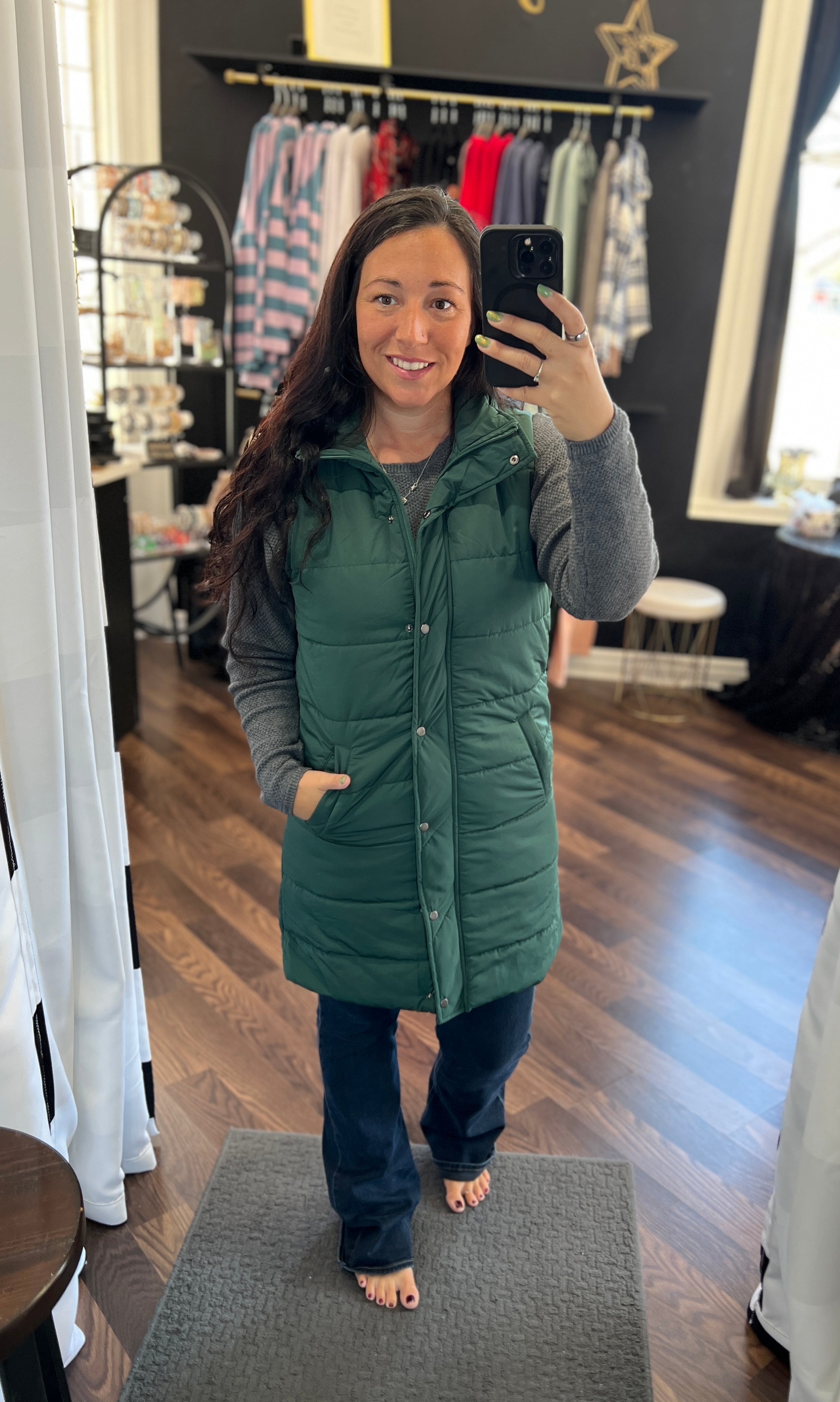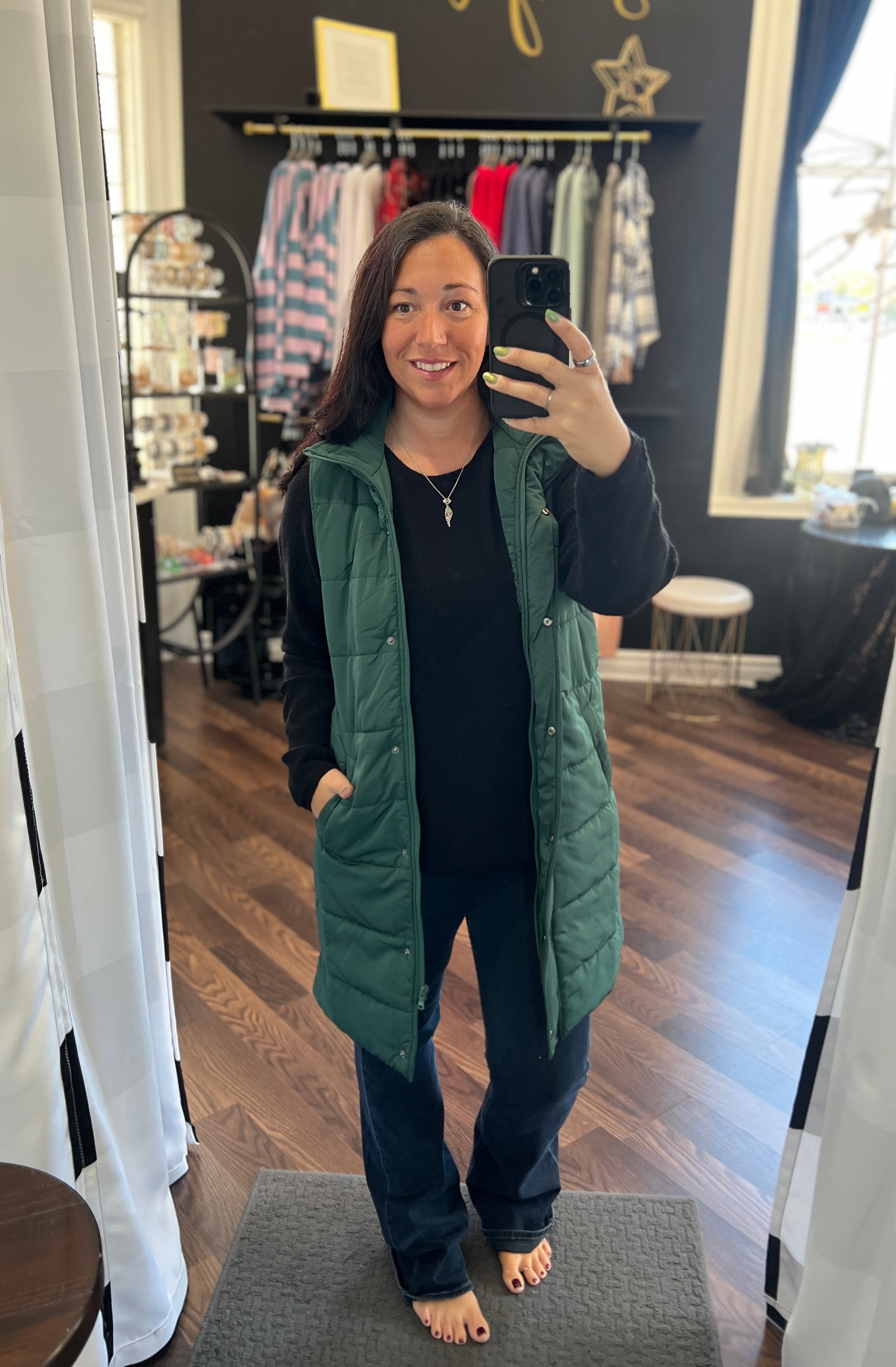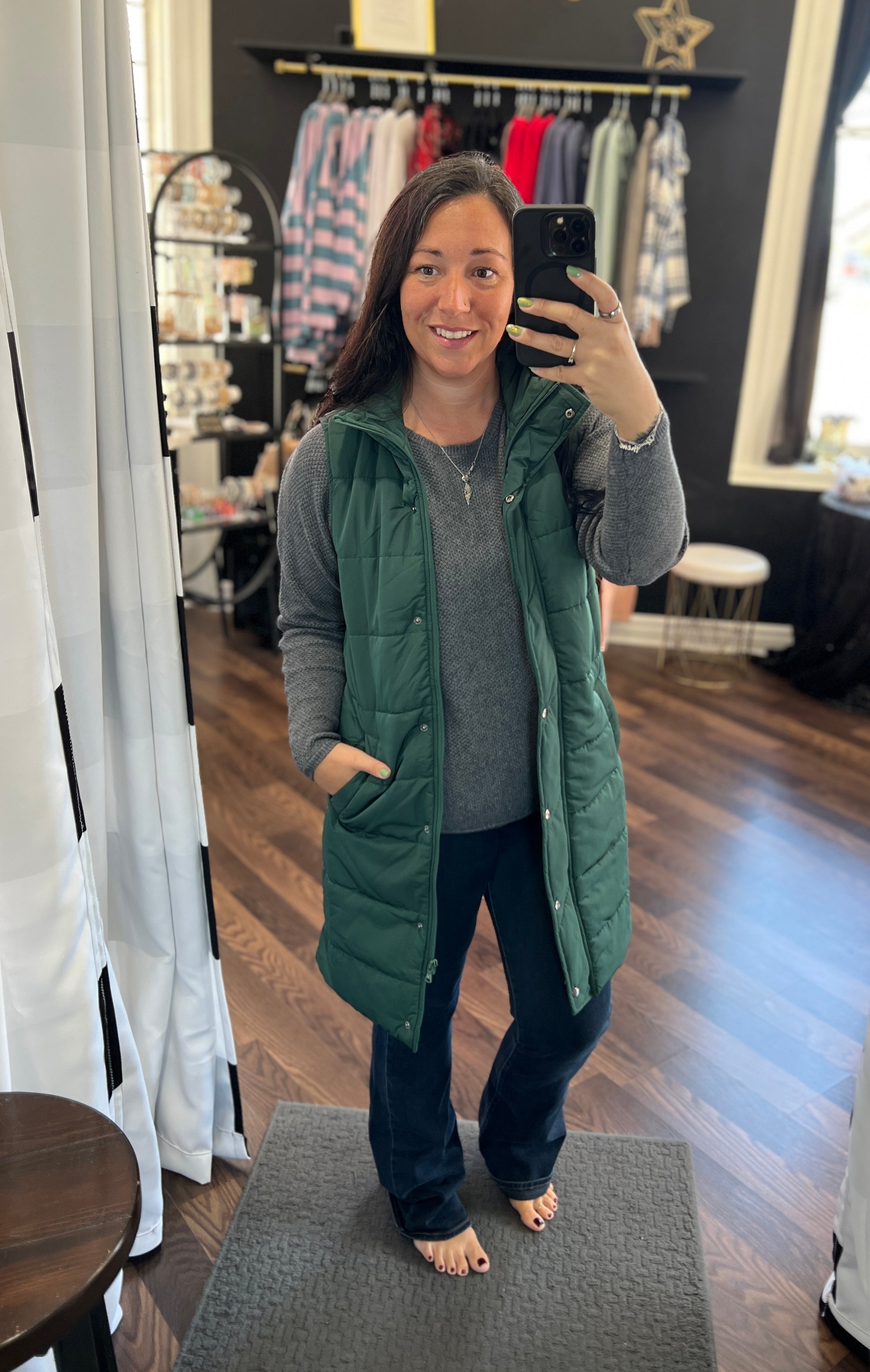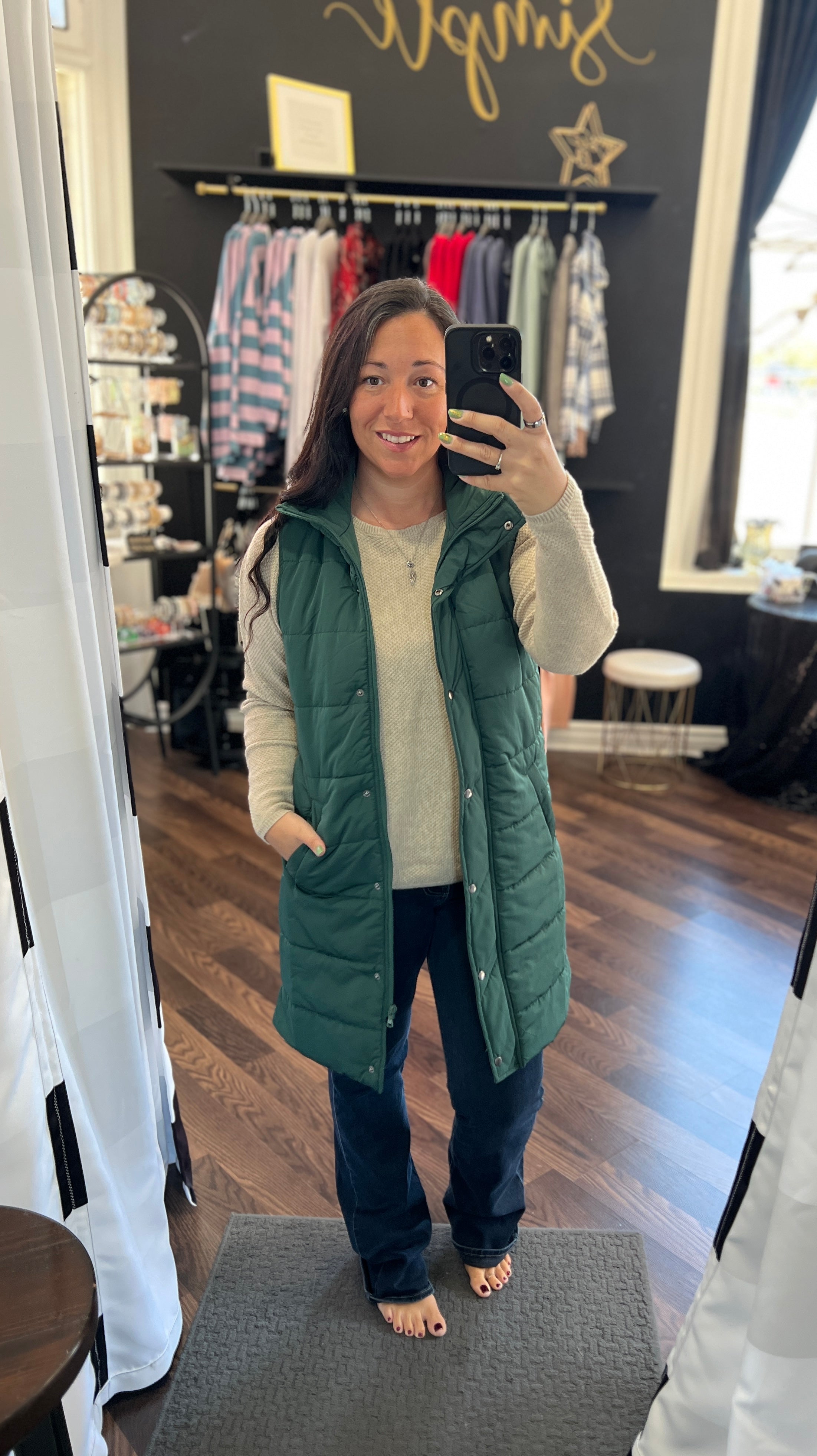 These incredible long vests are EVERYTHING; available in THREE colors - black, blush & hunter! They got all the details perfect including: long length to cover you butt, WARM, perfect relaxed fit for layering, POCKETS, zipper & snap closure. I cannot believe how light these vests are compared to their warmth and if you are traveling they pack well, NOT bulky. Get ready to fall in love and complete your fall and winter looks!