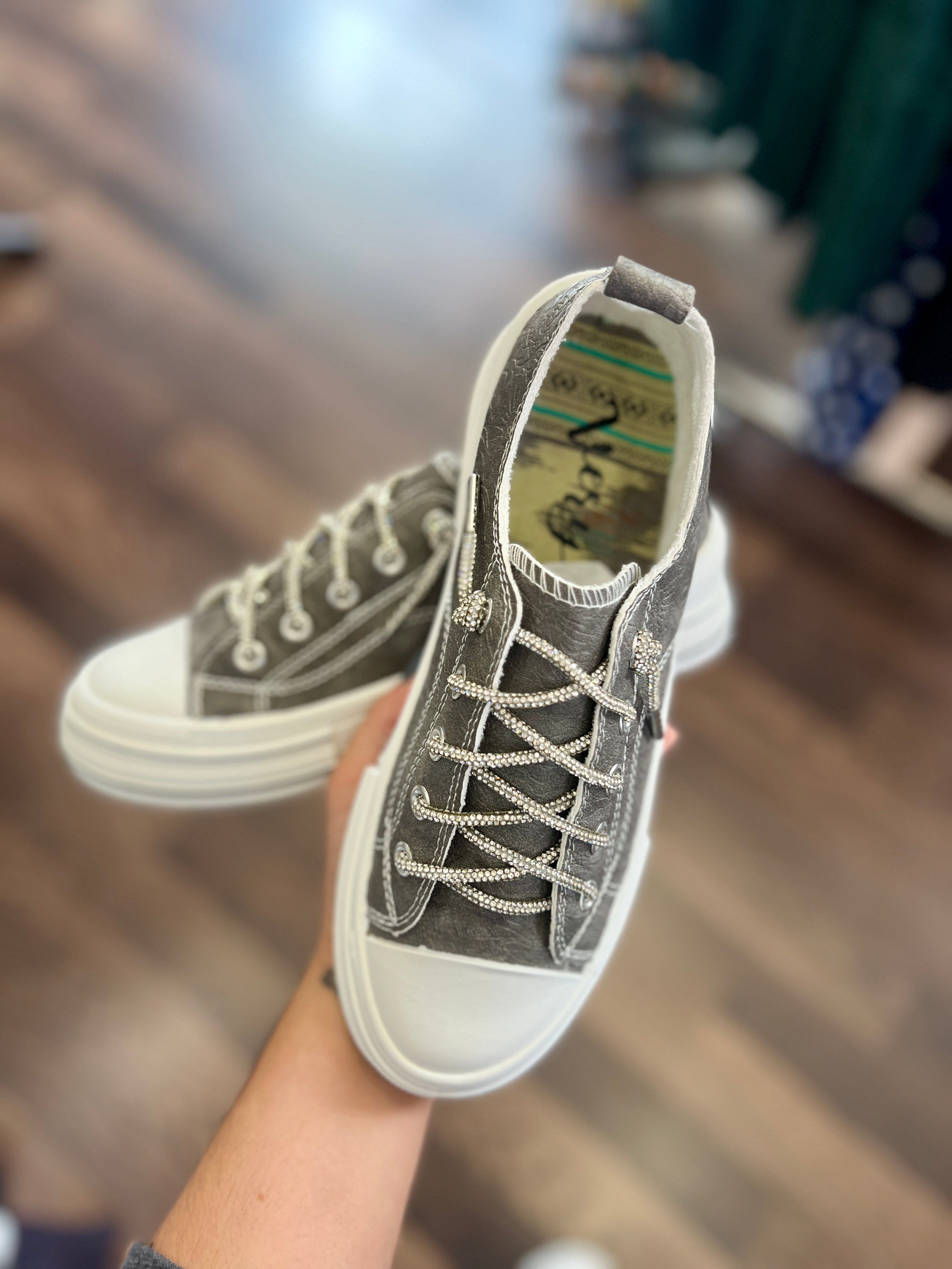 - Elevate your outfit with this cute slip on tennie that matches everything and has a beautiful tooled design!