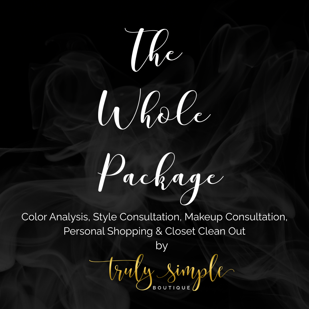 Our complete color & styling service appointments are about three hours; include a gift bag, light refreshments, personal styling reference guide & personal swatches to use for future shopping.